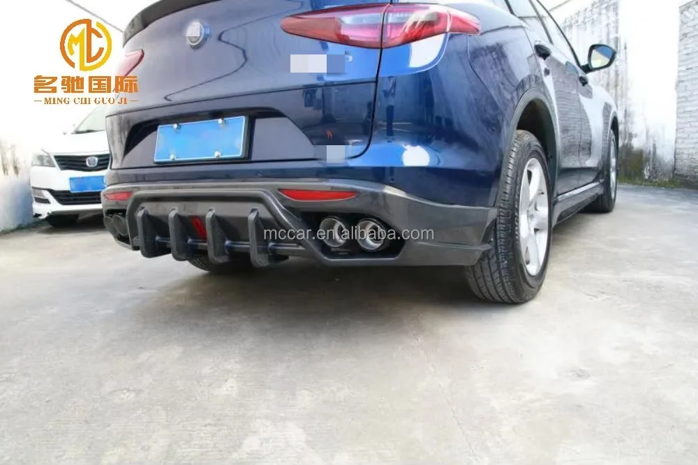 4 out Exhaust nozzle Carbon fibre car bumper rear Diffuser For Alfa Romeo stelvio Diffuser bumper