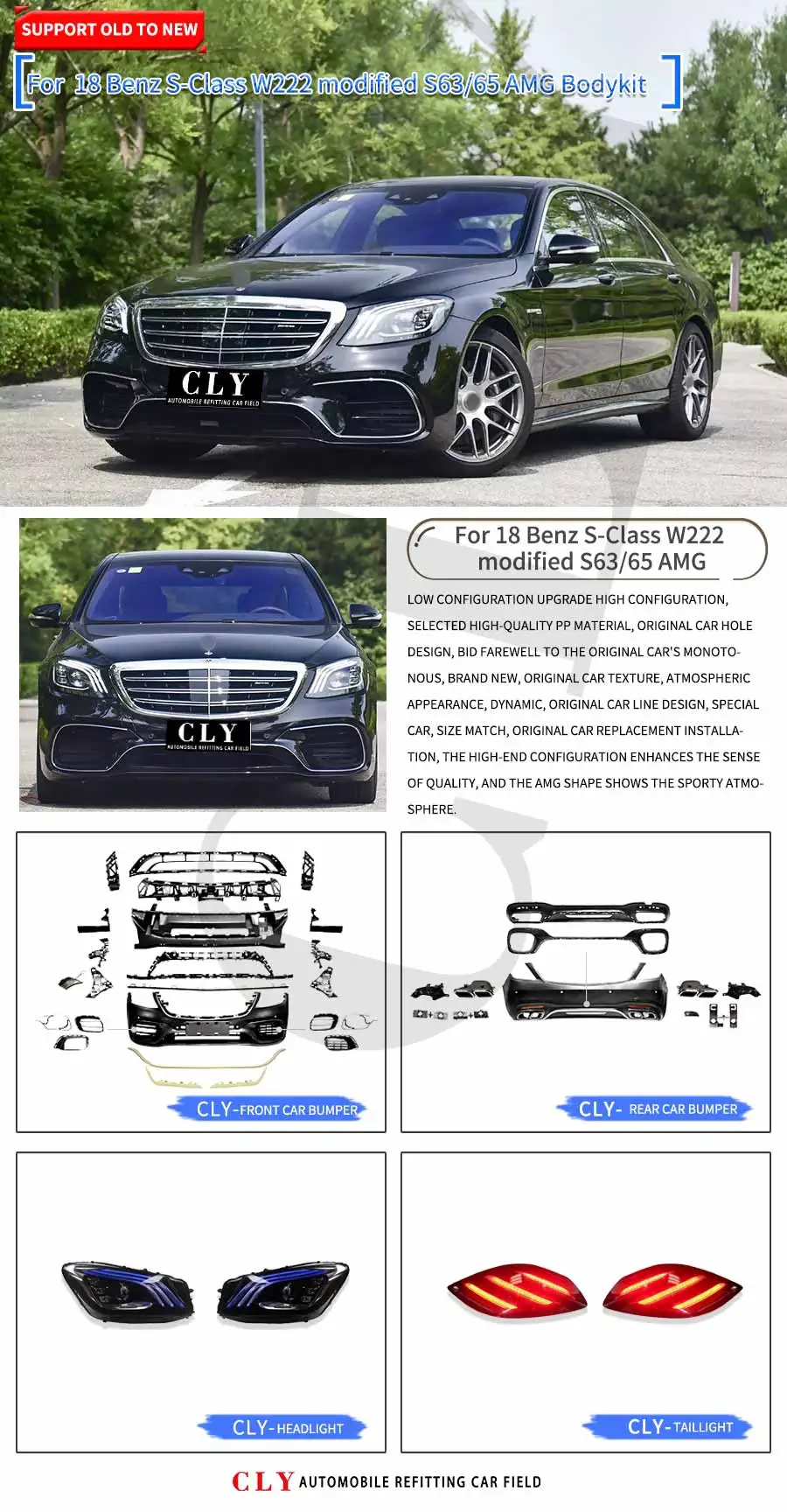 Auto Parts U KISS Body Kits Full Set For 2018 Benz S Class W 222 Modification S63 S65 AMG Car Bumper With Headlight Taillight