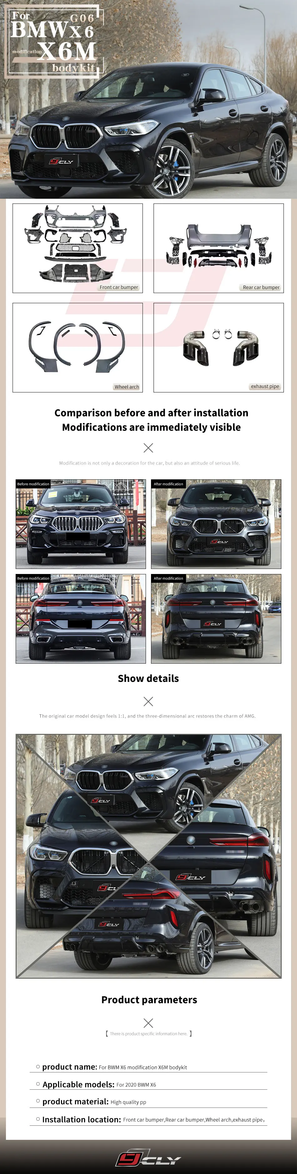 Automotive Car Parts Body Kits For BMW X6 G06 20 Upgrade X6M Front Rear Car Bumper With Grille Wheel Arch Rear Diffuser With Tip