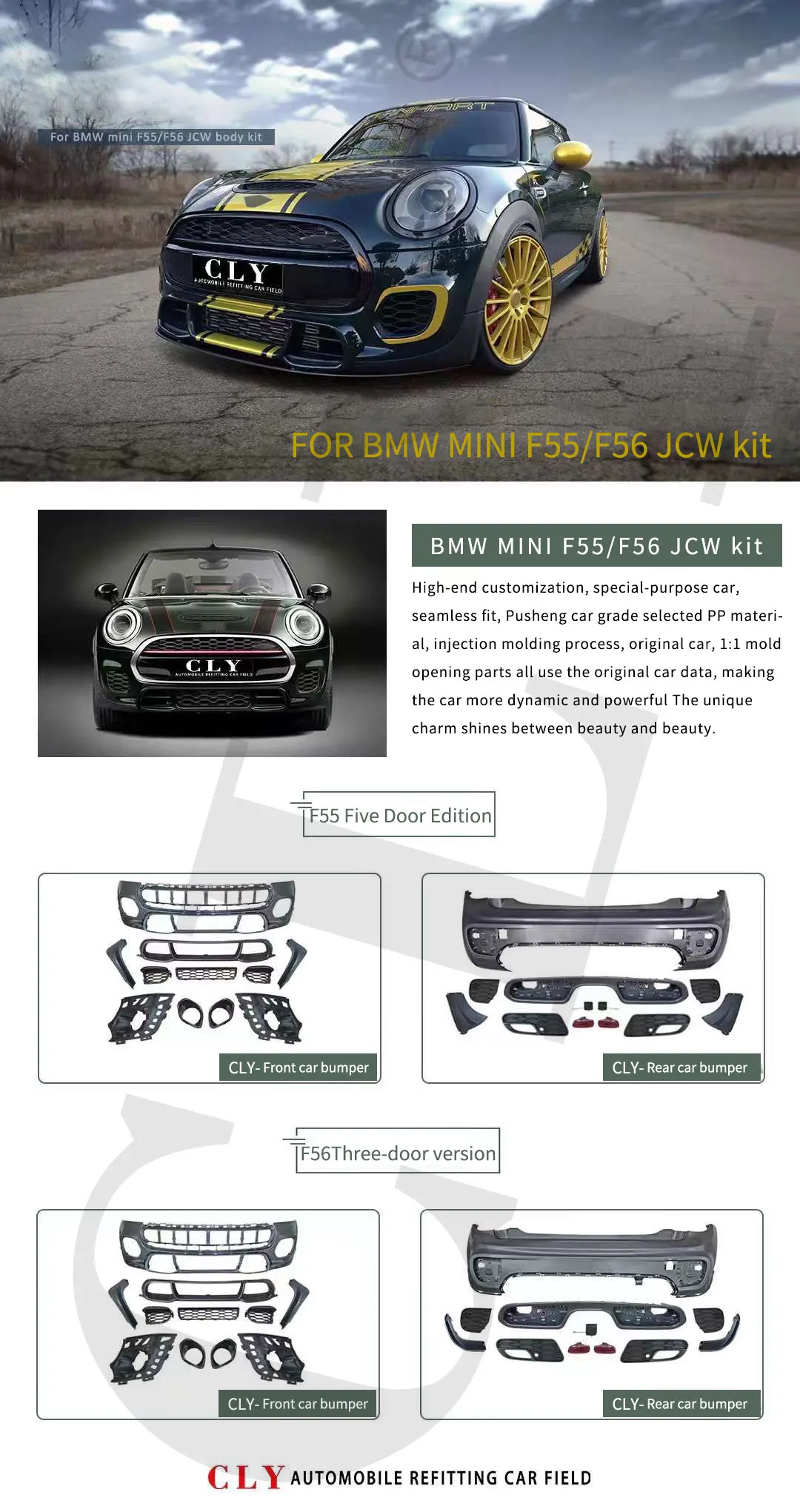 Body Kits Full Set Auto Parts Ukiss Car Bumper For BMW Mini F55 F56 modified JCW Kits With Three Doors Five Doors Version Bumper