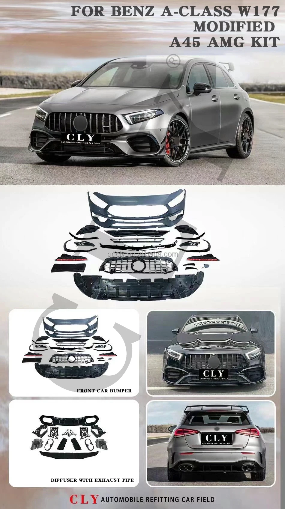 CLY Car bumpers For 2019-2021 Mercedes Benz W177 A Class Facelift 2021 A45 AMG Bodykit Diffuser with exhaust pipe
