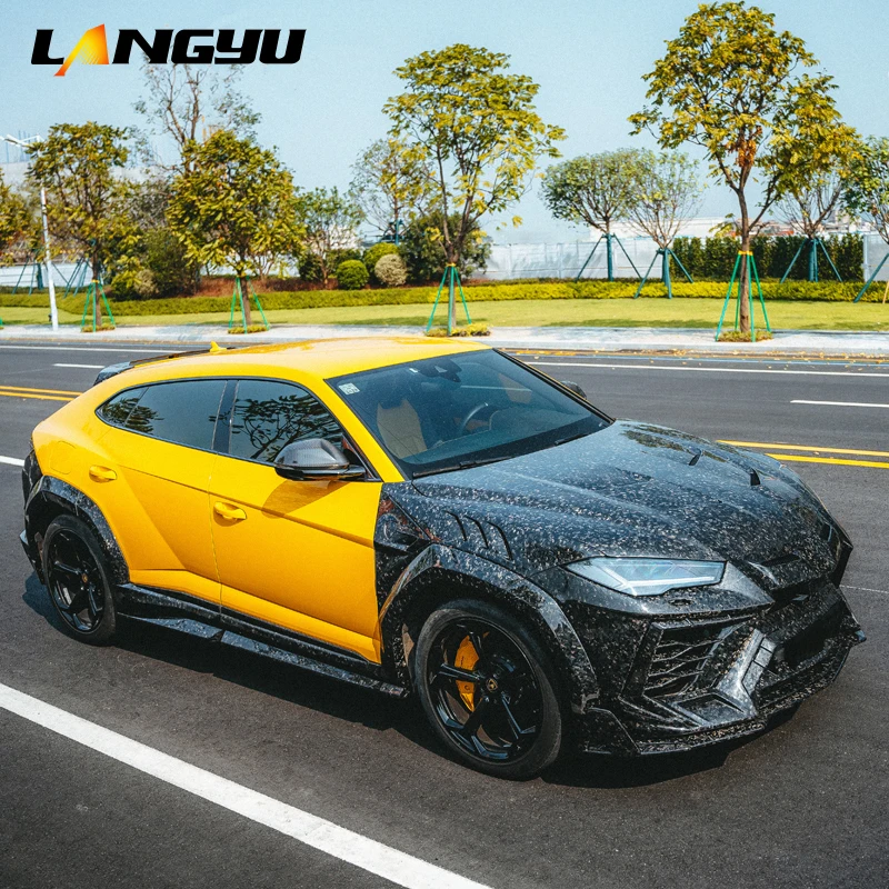 Langyu Car Body Parts Dry Forged Carbon Front Bumper Lip Side Skirt Man-sory Style Bodykit For Lamborghini URUS Body Kit