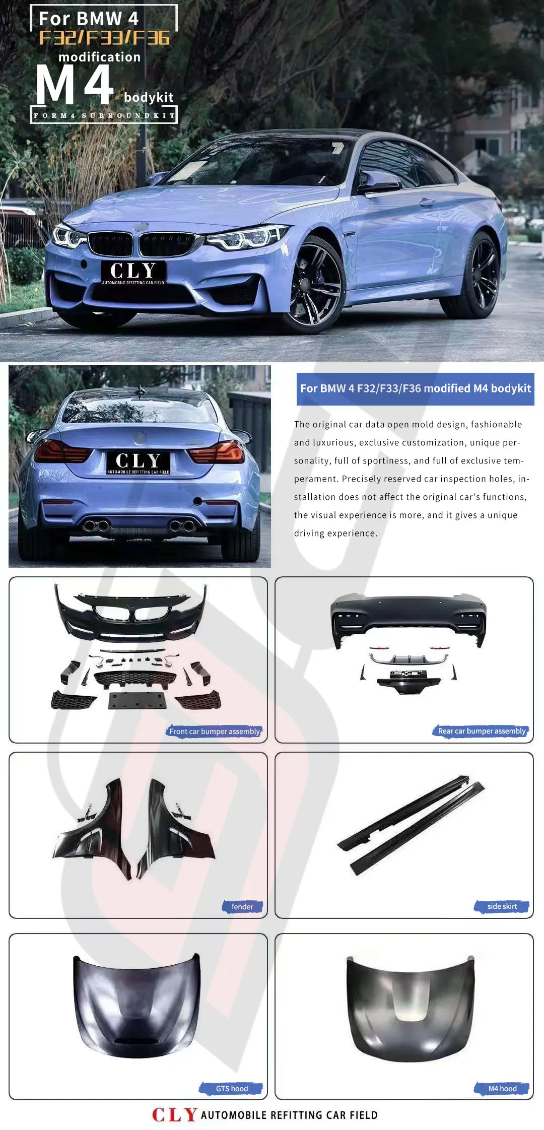 Luxury Car Bumper For BMW 4 Series F32 F33 F36 Upgrade M4 Body Kits Iron Fender Rear Diffuser Side Skirt Engine Hood GTS
