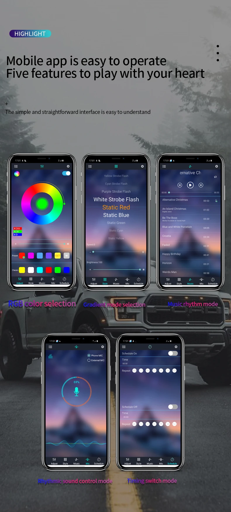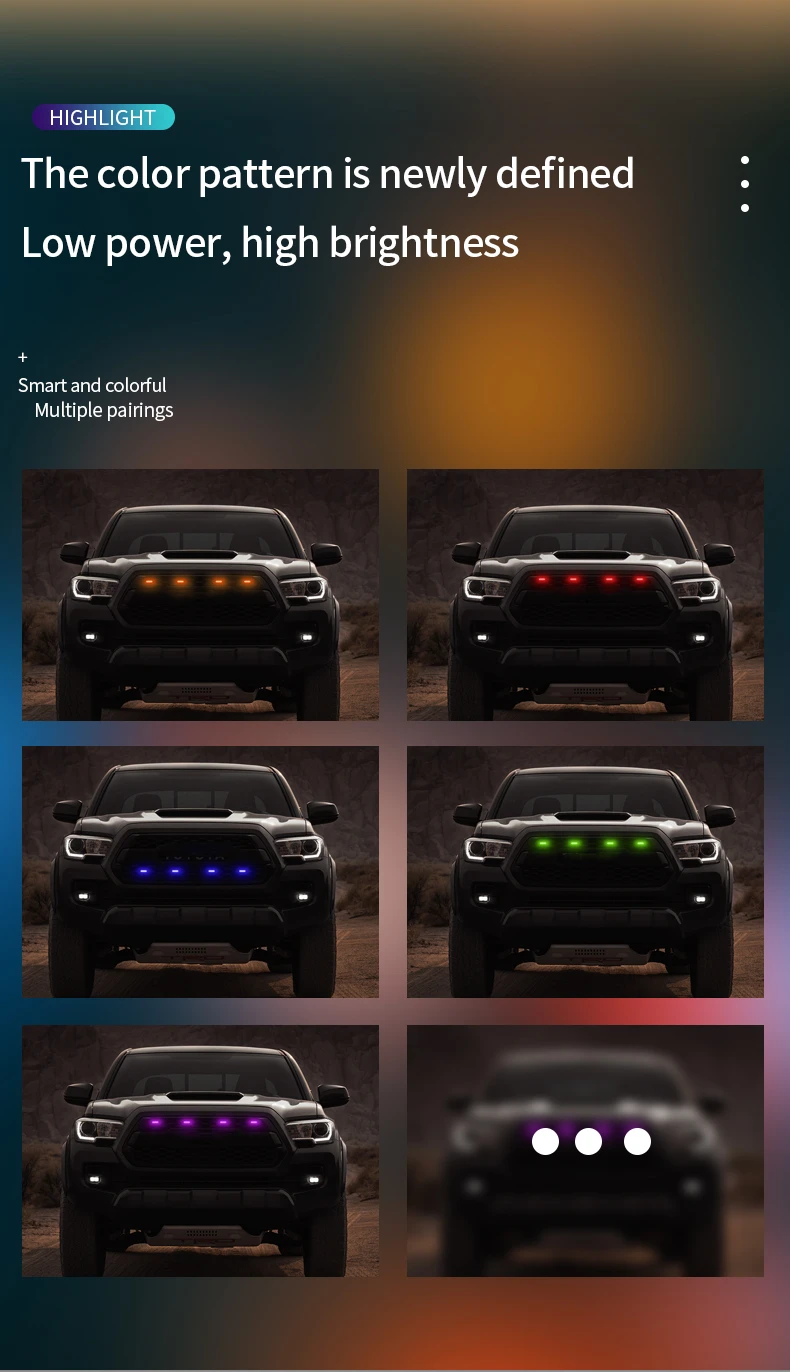 RGB Front Hood Grille Amber Led Lights Bumper Grille Led Lights Kit Car Styling Accessories
