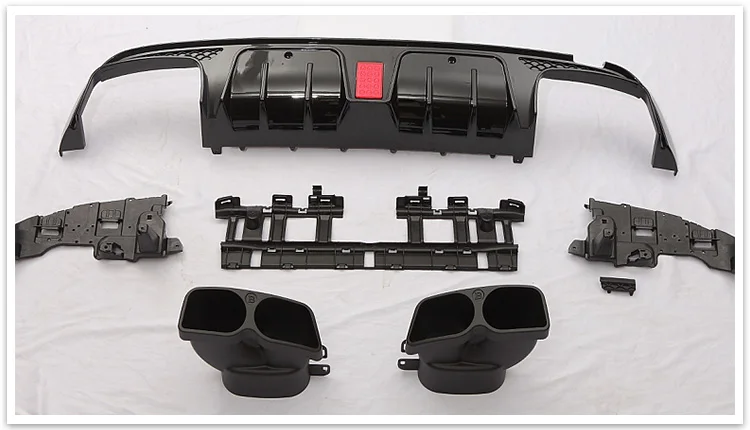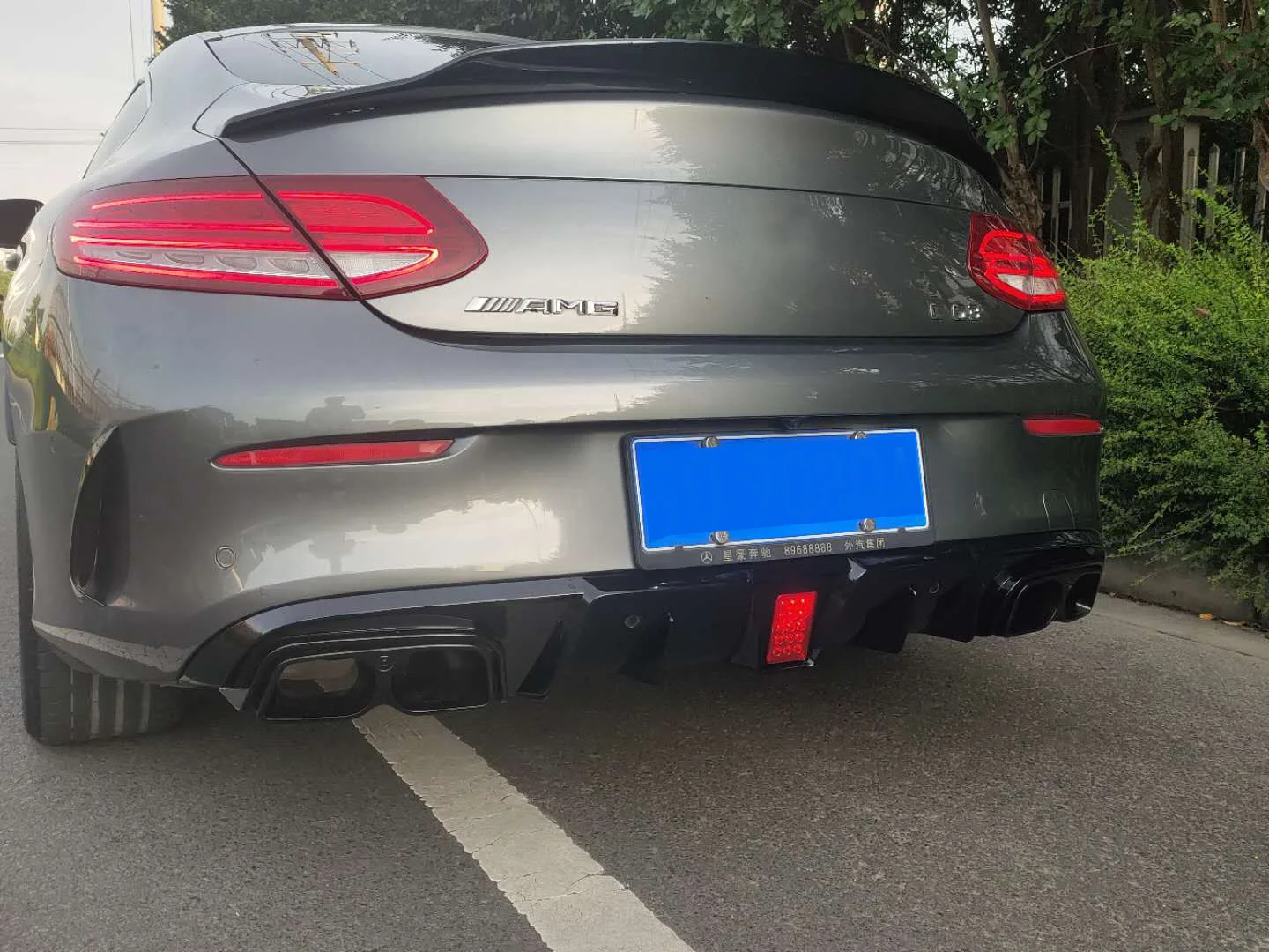 W205 diffuser ABS rear bumper diffuser gloss black rear lip with exhaust tips for Mercedes W205 coupe