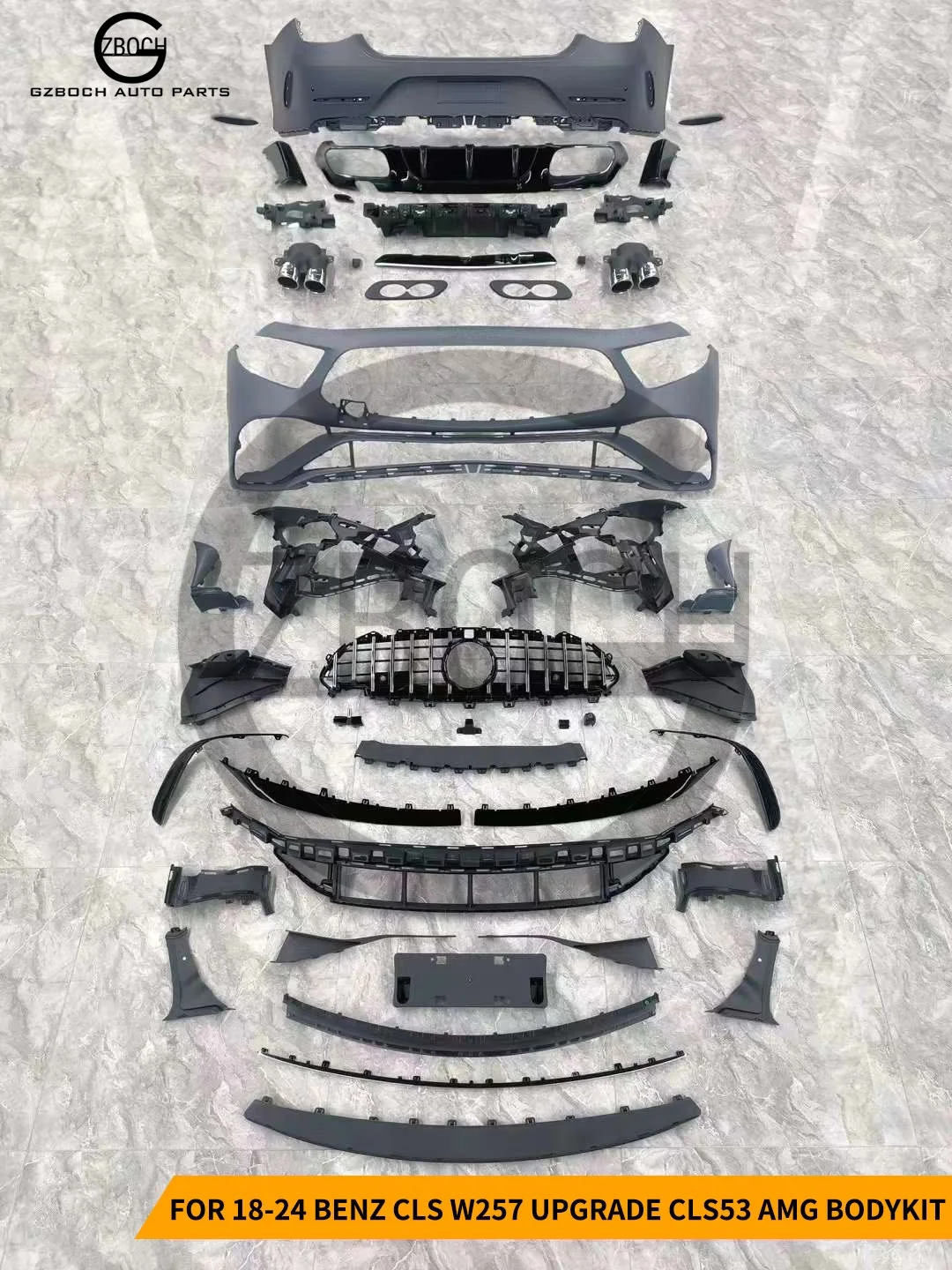 W257 car bumper For Mercedes CLS CLS350 CLS400 CLS450 CLS W257 C257 to CLS53 AMG body kit front bumper grill diffuser tips