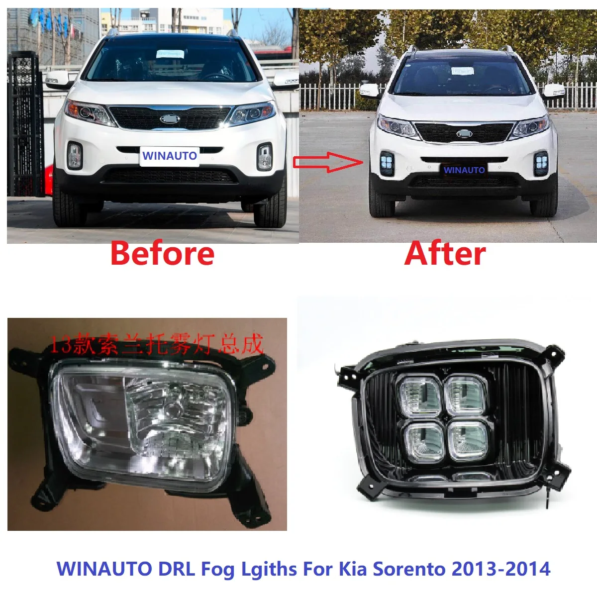 WINAUTO Car Front Bumper Light Foglight Fog lamp DRL For Kia Sorento 2021 LED Daytime running light